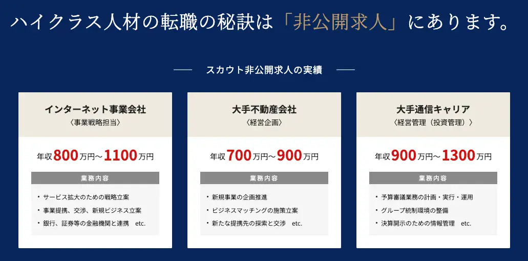 年収800万~2,000万以上を狙うハイクラス転職サービス「秘匿性の高い非公開求人」多数。